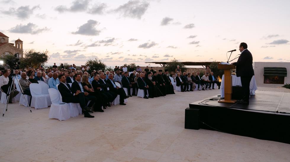 Στην ομιλία του, ο Αρχιεπίσκοπος Κύπρου Γεώργιος αναφέρθηκε στην ιστορικότητα της περιοχής στην οποία ελλιμενίζονταν τα πλοία που μετέφεραν το σιτάρι προς την Κωνσταντινούπολη. «Εδώ κατήχησαν και κάποιοι Ρωμιοί από την Κωνσταντινούπολη, Έλληνες, για αυτό η Επισκοπή αυτή ονομάζονταν Επισκοπή των Ρωμαίων. Πατούμε μια ιστορική περιοχή, η οποία δόξασε και την περιοχή αυτή αλλά και ολόκληρη την Κύπρο», τόνισε ο Αρχιεπίσκοπος Γεώργιος που συνεχάρη εκείνους που είχαν το όραμα για τη μεγάλη ανακαίνιση.