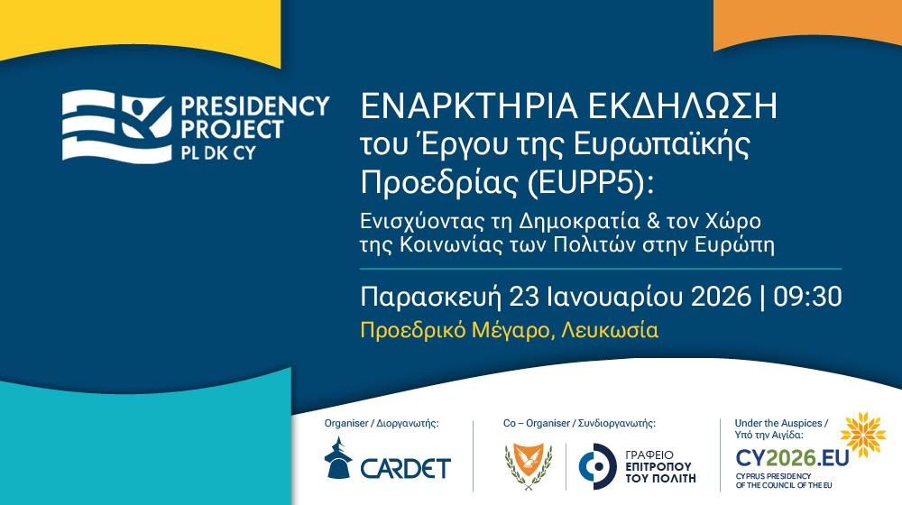 Η εκδήλωση αποτελεί μέρος των εθνικών δράσεων και της ενεργού συμμετοχής της κοινωνίας των πολιτών που θα πραγματοποιηθούν στην Κύπρο ενόψει της Προεδρίας του Συμβουλίου της Ευρωπαϊκής Ένωσης το 2026.