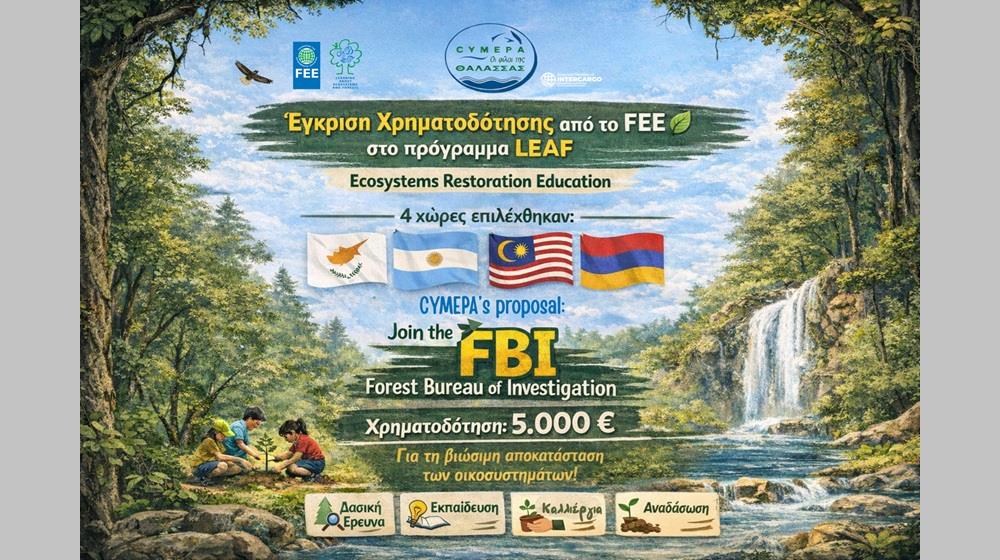 Η πρόταση της Κυπριακής Ένωσης Προστασίας Θαλάσσιου Περιβάλλοντος (CYMEPA) για χρηματοδότηση για τη δράση Ecosystems Restoration Education ERE (στο πλαίσιο του προγράμματος LEAF – Learning about Ecosystems and Forests) έχει επιλεγεί μαζί με τρεις άλλες προτάσεις παγκοσμίως, όπως ενημερώθηκε από το Foundation for Environmental Education (FEE).